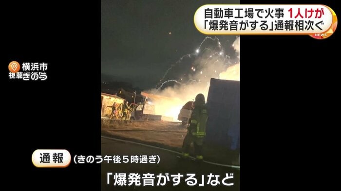 神奈川・横浜市泉区の自動車工場で21日火事があり、1人がけがをした。