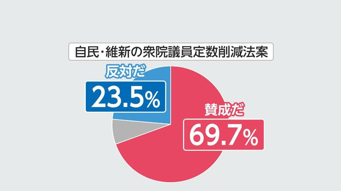 問10 与野党協議で1年以内に結論が出なければ衆院議員定数を小選挙区25議席、比例代表20議席自動削減する与党の法案に賛成か。