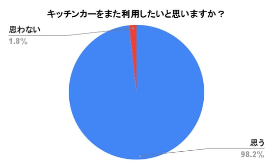 一方で「思わない(キッチンカーを利用したくない)」と回答したのは、わずか3名にとどまっています。