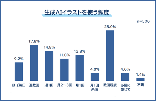 ・生成AIイラストの使用頻度は「数回程度」が最多