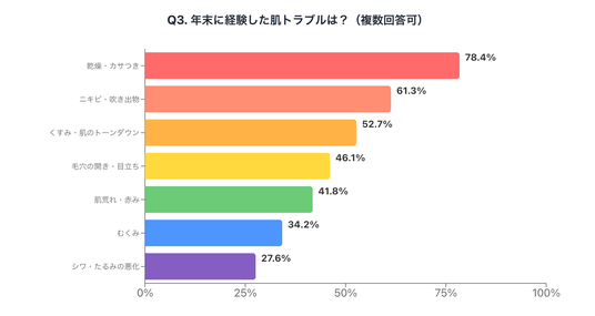 年末の肌トラブル1位は「乾燥・カサつき」78%