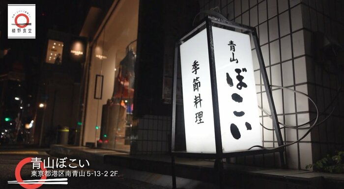 植野さんがやってきたのは、多くのブランドショップが建ち並ぶ表参道。目的の店があるのは、駅から徒歩約8分の場所。骨董通りに面したビルの2階にある小料理屋「青山ぼこい」だ。