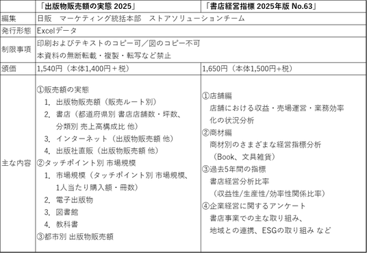 日本出版販売株式会社(代表取締役社長:富樫 建、略称:日販)は、12月22日(月)、出版市場の現状を把握するための統計資料として、「出版物販売額の実態 2025」「書店経営指標 2025年版」を発行しました。