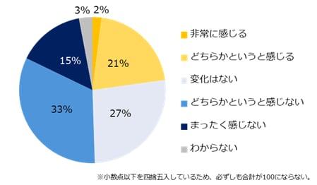 ▼「まったく感じない」「どちらかというと感じない」と回答した企業