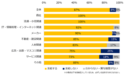 - 87%の中小企業が冬季賞与を「支給する」。昨年から3ポイント減少。- 36%が昨年より「増額する」と回答。増額企業は昨年よりも12ポイント減少。増額幅は「1%~3%未満」が最多で、増額理由トップは「社員の意欲向上」。
