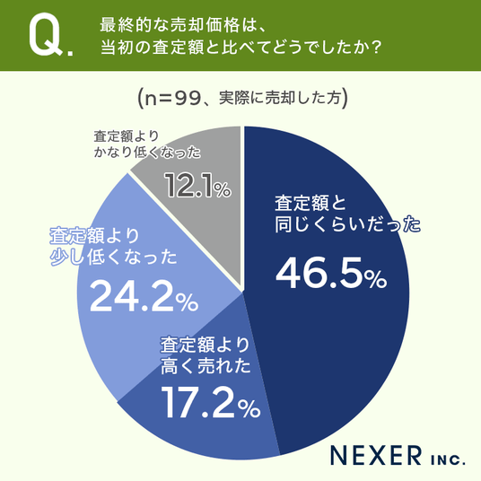 約半数の方が「査定額と同じくらい」だった一方で、約半数の方は「査定額から変化があった」ことが分かります。