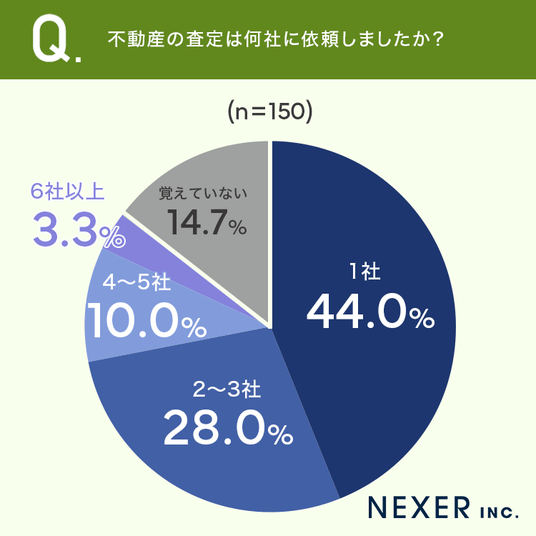 不動産の査定について「1社」のみに依頼した方が44%と半数近くいました。