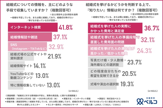 結婚式の情報収集はインターネット、結婚情報誌が中心。知りたい情報は「費用と満足度の実例」