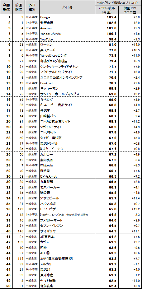 日経BPコンサルティング調べ「Webブランド調査2025-秋冬」