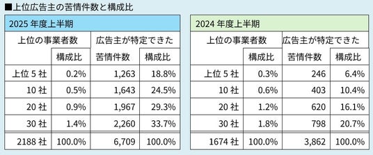 一部の広告主に苦情が集まる傾向、上位5社で1,263件