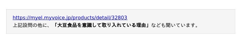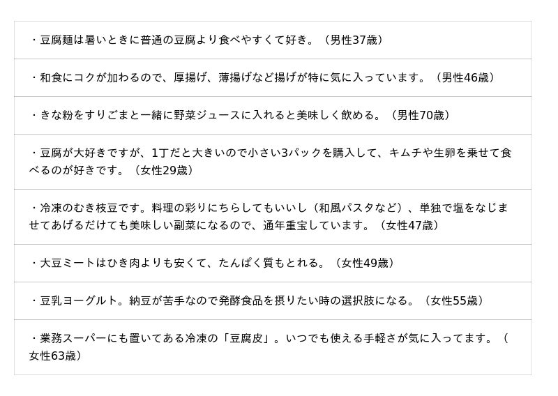 大豆食品の摂取状況、購入時に気になることや魅力などについて聞いています。調査結果をお知らせいたします。