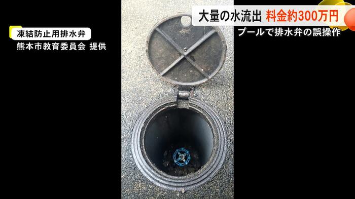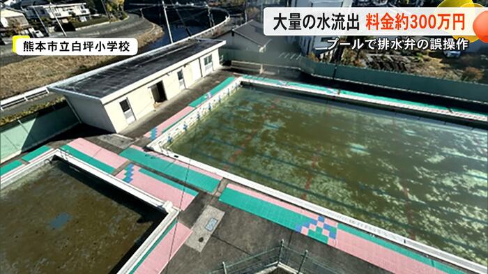 熊本市教育委員会は、熊本市立白坪小学校で教職員がプールの排水弁の操作を誤り、大量の水を流出させたと発表した。このミスによる追加の水道料金は、約300万円と推定され、市が税金で補填することになる。