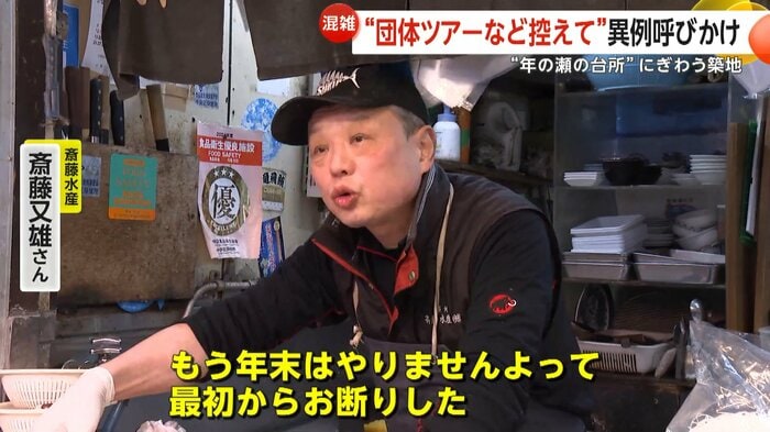 買い出しのお客さまの邪魔じゃないが、混み合うので倍になるので。観光のお客さまの海外のお客さまガイドさん来ますけど、もう年末はやりませんよって最初からお断りした。