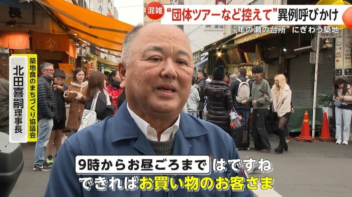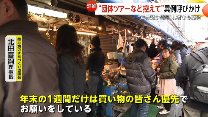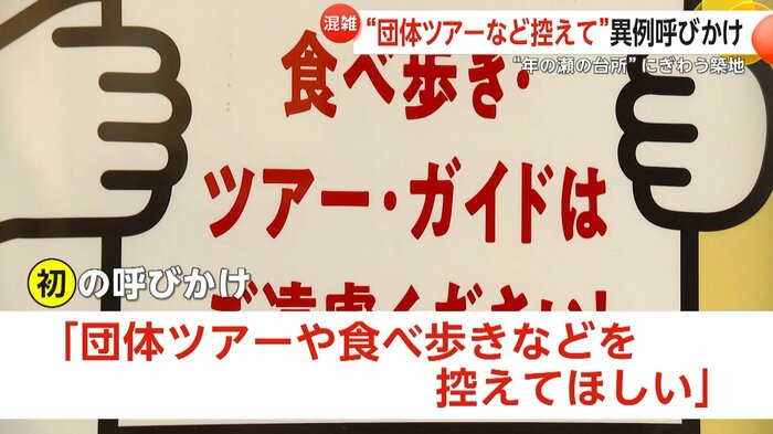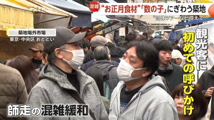 「マグロの中トロ」に「エビ」や「ウニ」。年の瀬の台所とも言われる東京・中央区の築地場外市場。年末年始の買い出しをする人たちで賑わう中、師走の混雑緩和へ観光客に初めての呼びかけがあった。