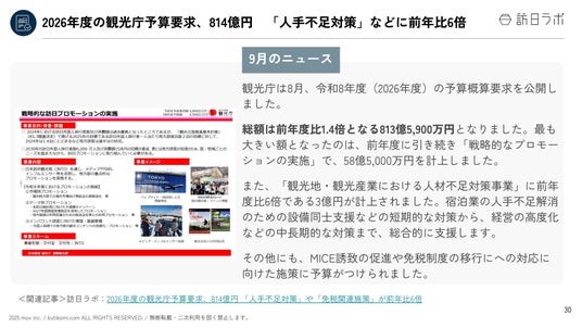 - 2026年度の観光庁予算要求、814億円 「人手不足対策」などに前年比6倍
