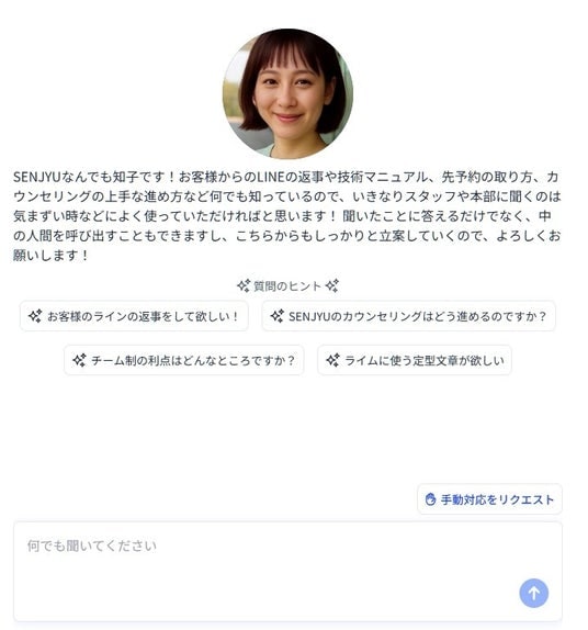SENJYUでは、来店前に不安を解消し、カウンセリングをより充実させるための事前カウンセリングとしてAIクローンを活用**しています。