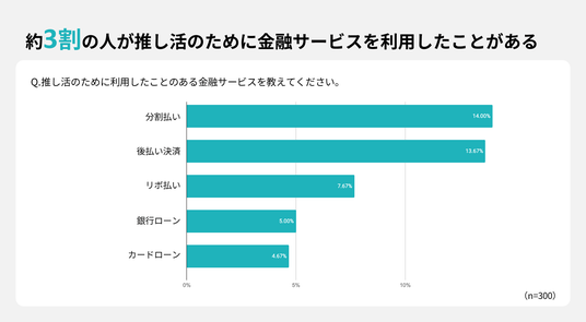 ・推し活のために分割払いやローンなど、各種金融サービスを利用した経験のある人は約3割にのぼる