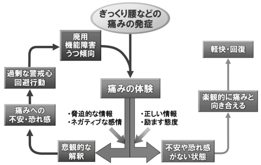 「痛みの恐怖―回避モデル」*²という慢性疼痛研究における最も影響力のあるモデルがありすが、これは痛みへの恐怖心から活動を避け(回避行動)、その結果、筋力低下や気分障害を招き、さらに痛みを感じやすく、悪化させてしまうという悪循環を指しています。