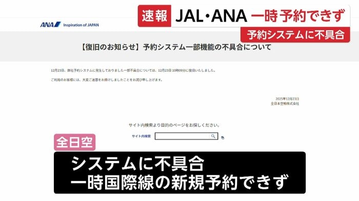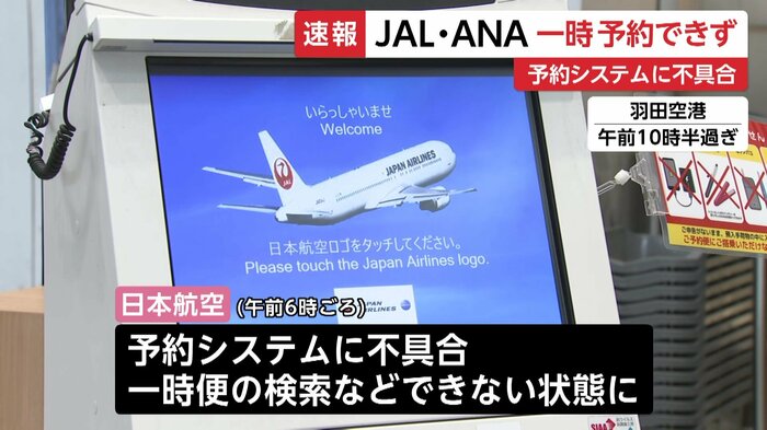 全日空でも、システムの不具合で一時、国際線の新規の予約ができなくなったが、現在は日本航空、全日空ともに復旧し、運航には影響はないという。