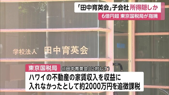 田中育英会に対しても、ハワイに所有する不動産について家賃収入を収益に入れていなかったとして、およそ5千万円の所得隠しを指摘し、およそ2千万円を追徴課税した。