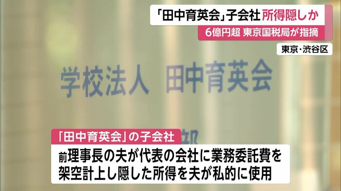 関係者によると、田中育英会の子会社は、前理事長の夫が代表を務める米国の資産運用会社へ架空の業務委託費を計上し、隠した所得を夫が私的に使っていたという。