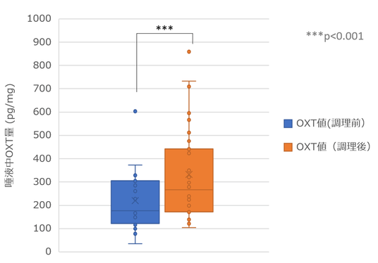 測定項目:調理直前および調理終了から10分後に唾液を採取し、唾液中のオキシトシン量を分析しました。