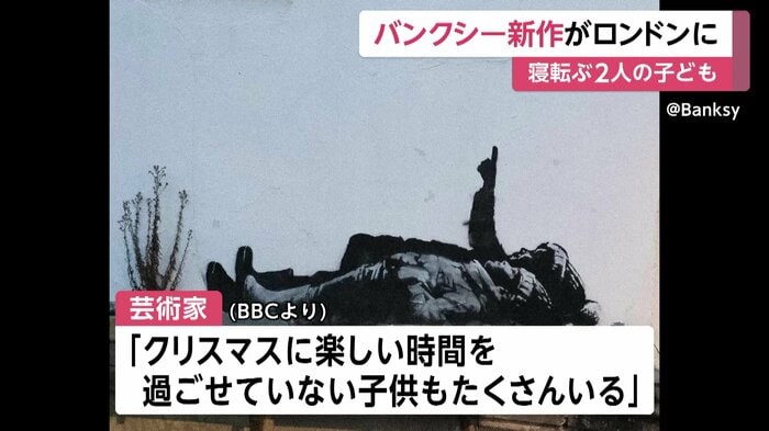 作品に込められたメッセージは明らかになっていませんが、地元メディアは、同じ図柄とみられる作品がホームレス問題に関連する場所でも確認されたことに触れ、子どものホームレス問題を訴える狙いではないかという見方を伝えています。