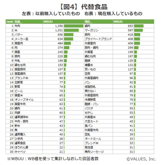 ◆代替される組み合わせ一位は「バター→マーガリン」! お肉やお米もランクイン