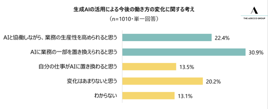 7. 業務での生成AIの活用による今後の働き方の変化として、就業者は「AIに業務の一部を置き換えられると思う」と感じている/2026年は「人とAIの共創」が進む一年になる可能性