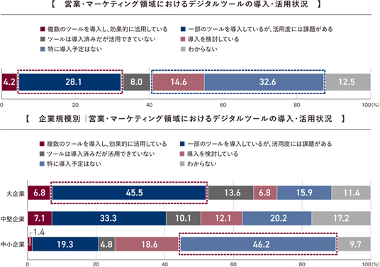 (9)営業・マーケティング領域におけるデジタルツールは、半数近くの企業で導入が進まず。