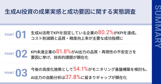 ~未達要因の 8 割以上が「出力品質の不安定さ」と回答。成功企業は「モニタリング基盤」への投資を加速~