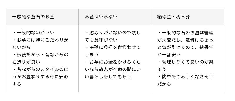 ◎お墓のタイプ別のフリーアンサーの抜粋
