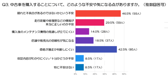 Q3. 中古車を購入することについて、どのような不安や気になる点がありますか。(複数回答可:注3)