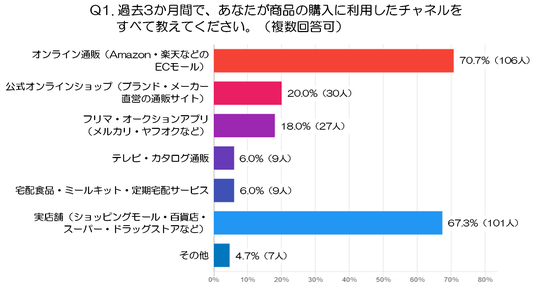 Q1. 過去3か月間で、あなたが商品の購入に利用したチャネルを教えてください。(複数回答可)