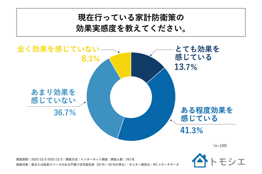 GCストーリー株式会社(本社:東京都江東区、代表取締役社長:西坂 勇人)が提供する「トモシエ」は、庭または駐車スペースのある戸建て住宅に住んでいる人(20代~60代の男女)を対象に「戸建て住宅居住者の家計防衛策に関する調査」を実施しました。この調査から、庭または駐車スペースのある戸建て住宅に住んでいる人における家計防衛策の実態やその効果、さらには家計防衛策を実施する上での障壁などが明らかになりました。