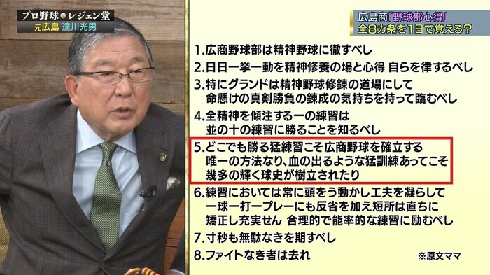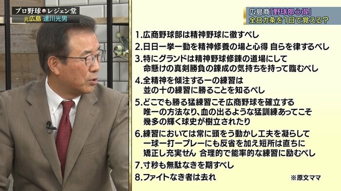 ああ、広商野球部は精神野球に徹すべし、日日一挙一同を精神修養の場と心得 自らを律するべし、特にグランドは精神野球の鍛錬の道場にして…、これあったよ。