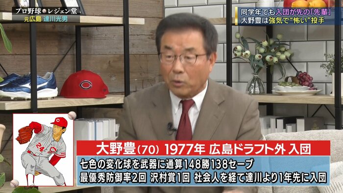 「プロ野球レジェン堂」今回のゲストはですね、「投手王国」広島カープを老獪(ろうかい)なリードで支えるとともに、数々の印象的なチームプレーでファンを楽しませてくれます、球界きってのエンターテイナー・達川光男さん(70)です。