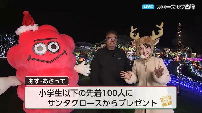 加えて24(水)25(木)の2日間、フローランテ宮崎では、小学生以下の先着100人にサンタクロースからのプレゼントを準備しているそうです。そこも重要な要素ですね。
