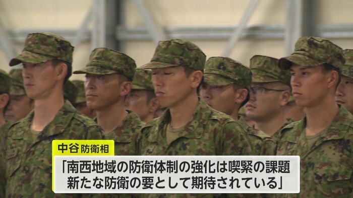 中谷大臣は「南西地域の防衛体制の強化は喫緊の課題で、新たな防衛の要として期待されている」と部隊の重要性を強調した。