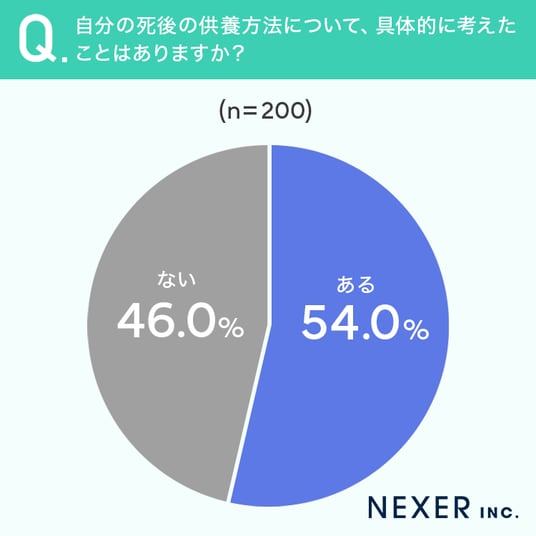 自分の死後の供養方法について「具体的に考えたことがある」と回答した方は54%と半数を超えました。