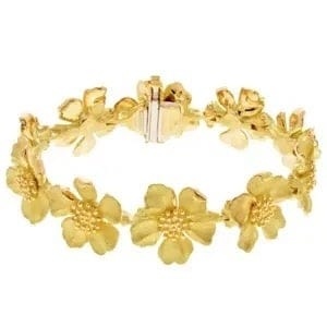 ティファニー(Tiffany&Co) クラシックフラワー ブレスレット K18YG Aランク ティファニーには「ペーパーフラワー」をはじめパロマピカソやエルサペレッティの手掛けた様々なフラワーモチーフのジュエリーが存在します。19世紀後半では宝飾デザイナー:ポールディング・ファーナムのデザインした自然をテーマに再現された花のブローチは大変価値のあるものとされています。