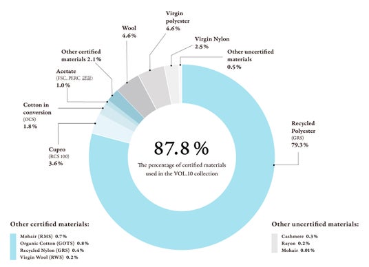 - 地球環境および生産者の労働環境への責任の履行が認証された素材の使用率、87.8%を達成
