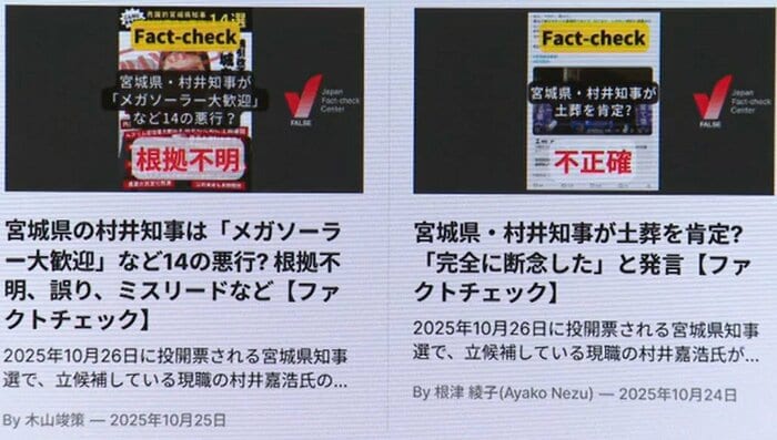2025年の宮城県知事選においても、4本の検証記事を配信した。その内訳は以下の通り。