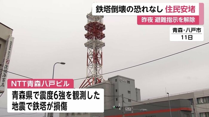 青森県で震度6強を観測した地震で損傷したビルの鉄塔の倒壊の恐れがなくなり、避難指示が解除され、一夜明け自宅に戻った住民からは安堵の声が聞こえた。