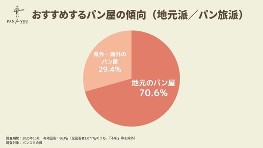 一方、254名(29.4%)は「県外・海外のパン屋」をおすすめしており、旅先やSNSなどで出会ったパンを楽しむ「パン旅派」も一定数存在することが明らかになりました。