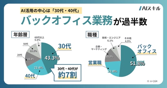 - AI活用の中心は「30代・40代」。利用者の約7割が実務の中核層。