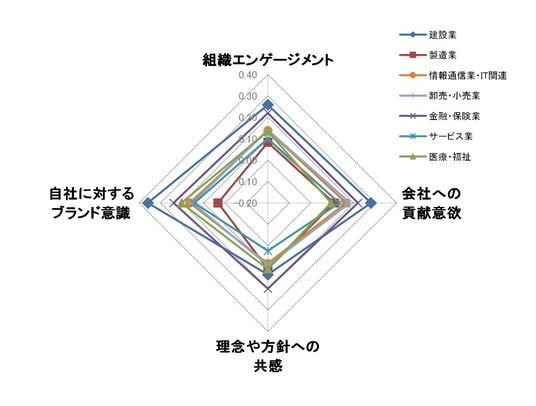 インターワイヤード株式会社では、エンゲージメントに関する市場調査を実施し、業種別のワークエンゲージメントおよび組織エンゲージメントの傾向、会社の施策、マネジメント、職務設計などがエンゲージメントに与える影響について分析しました。