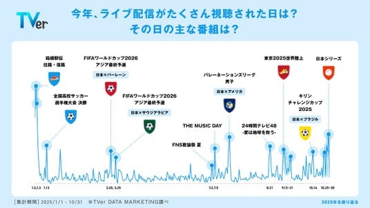 ※1:2025年202510月1日~10月31日における、TVer単体のVOD・リアルタイム配信・追っかけ再生およびSP LIVEを合計した全デバイスでの動画再生数(TVer DATA MARKETING調べ)