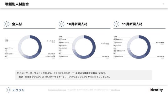 11月は「サーバーサイド」が39.2%、「フロントエンド」も14.3%と2職種で半数以上となり、