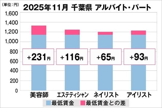 千葉県の美容業界における採用時給料に関する調査結果(アルバイト・パート)2025年11月美プロ調べ